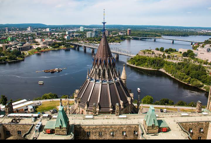 Parliament Hill, colloquially known as The Hill, is an area of Crown land on the southern bank of the Ottawa River in downtown Ottawa, Ontario, Canada. It accommodates a suite of Gothic revival buildings whose architectural elements were chosen to evoke the history of parliamentary democracy.